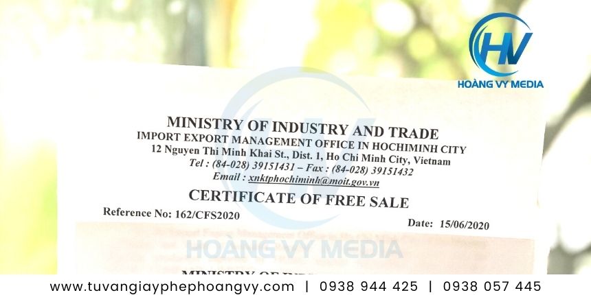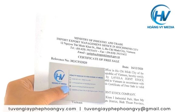“Mẫu giấy chứng nhận lưu hành tự do – HOÀNG VY Media thực hiện cho sản phẩm của Quý khách”
